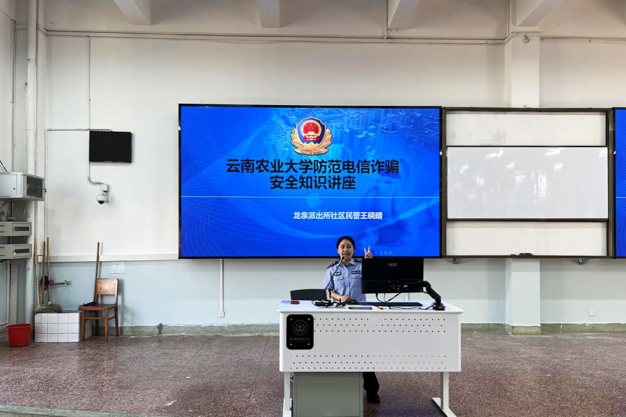讲座中,王晓晴结合学校发生的典型诈骗案例向同学们详细介绍网上刷单诈骗、网购诈骗、“杀猪盘”、网络贷款、冒充公检法诈骗、冒充好友借钱诈骗、社交软件交友诈骗等诈骗手法,分析了不法分子作案特点和诈骗手段,介绍了防范诈骗的常识,教育引导学生知法懂法,远离违法犯罪行为,加强自我防范,提高防诈能力。讲座中,保卫处围绕校园安全给同学们进行讲解。