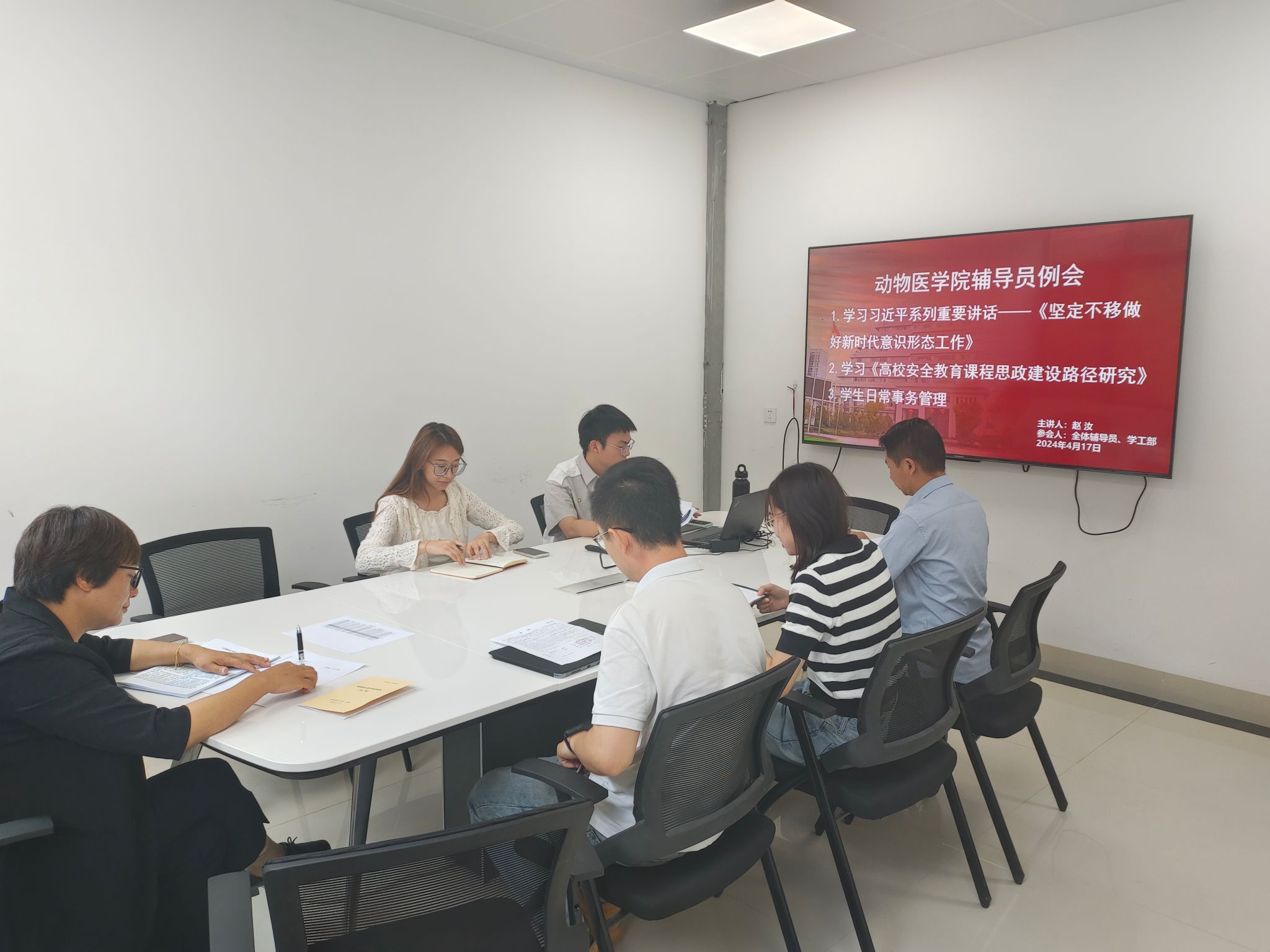 2024年4月17日上午10:00,bat365官网登录入口2024年春季学期辅导员工作例会在学院213会议室召开。本次会议由学院党委副书记赵汝同志主持,全体辅导员老师参会。